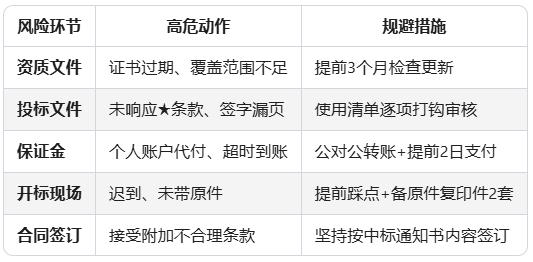 招投标本质是法律行为,任何一个环节的疏漏都可能引发连锁风险。务必以“零容错”标准执行!